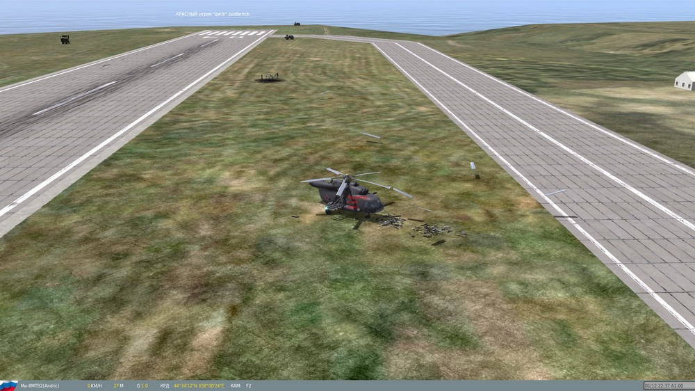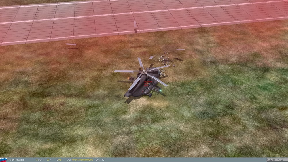1. Настройки управления. 1.1. При нажатии "Сохр. HTML" не сохраняет, а открывает "Мои документы". 1.2. Невозможно удалить назначение оси. Помогает только "Clear category" (про отсутствие русификации вроде писали уже), но после этого значение оси задать невозможно. На картинке это случилось с осью Z для РОШ (Ка-50_игра). Похожую ошибку встречал пару недель назад, когда настраивал управление для Су-25, повторно ошибка не попалась - исчезла в процессе манипуляций с устройствами (объединял через TARGET). Screen_141222_041113.jpg 2. Ми-8МТВ2. 2.1. Демонстрация в обучении "Vertical Take-off Demonstration" для Ми-8. Какое то странное поведение у вертолета, на вертикальный взлет не похоже. 2.2. Ошибка в ДМ. Отлетевшие лопасти парят в метре от земли. Screen_141221_004534.jpg Screen_141221_004554.jpg 3. Справочник. Отсутствуют изображения для РЛС П-19 и СНР-125. 4. Ка-50. В сетевой игре при внешнем обзоре (F2) дружественного (со стороны противника не проверял) Ка-50 отсутствуют шасси, хотя у игрока, управляющего данным ЛА при внешнем обзоре самого игрока, шасси присутствуют (выпущено). 5. Карта. 5.1. Мост южнее н.п. Пашковский (ШРТ 44град 59` 43"; ДЛГ 39град 6` 39"). В процессе ведения боевых действий на управляемом Т-80, для стратегически важных целей оставил танк на мосту, пересел в Ка-50, совершил пролет над местностью, обнаружил, что танк стоит... под мостом. Screen_141222_014804.jpg 5.2. Рядом с этим мостом залив небольшой (СЗ от моста), какая то ботва с зимними текстурами (летние не смотрел). Координаты ШРТ 44град 59` 56"; ДЛГ 39град 6` 26". Не критично. Screen_141222_014946.jpg