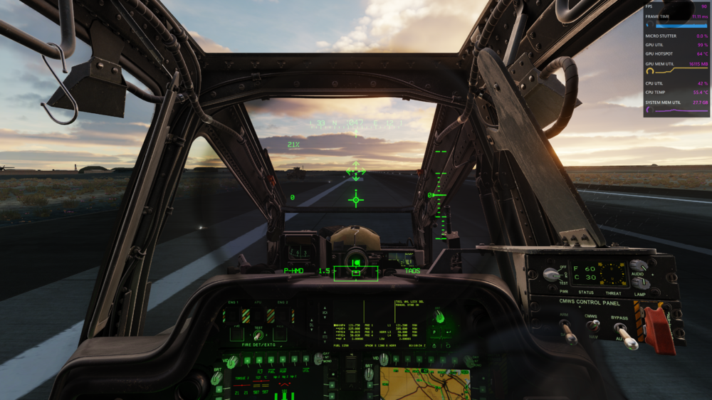 Good afternoon, @zyll That is basically what I have been looking for for ages now! An automated way to get the file sizes in check! Thank you so much for pointing me in that direction I ran the script through my DCS folder and noticed the following results with regards to my original 4 points as laid out in the first post: 1. Less hard stuttering whenever I fly the CH-47, AH-64 or the OH-58 around the new Afghanistan map due to smaller textures being loaded in/out om memory or the SSD. 2. VRAM usage going to a manageable 13-14GB instead of instantly running to the 16GB which is the max on my GPU. RAM usage down from 40GB to 30GB. 3. Game loads slightly faster, though not a huge deal. 4. Total game size on SSD reduced from 861GB to 804GB. The texture conversion took my 5800X3D less than an hour to complete. The aircraft and cockpits look nearly identical and you really have to put them side by side to see the difference but the advantages are huge IMHO. @BIGNEWY and @NineLine This is not a huge ask of the team. This way we can still fly around using high texture settings with clear readable cockpits. It would be a huge deal if someone could please have a look at an optimized texture resolution and format option especially with the newer modules having ever larger texture file sizes. Even compressing all textures from 32bit to a much more manageable DXT5 or similar would be a plus. Can you please let us know if there is anyone looking into this? It shouldn't have to take 1,5 years plus to do what the community has done with the script and freely available tools (many thanks to @Zyll for pointing it out and @zbysiek for creating the awesome script) Kind regards, Vincent van Veen And two more shots from the AH-64