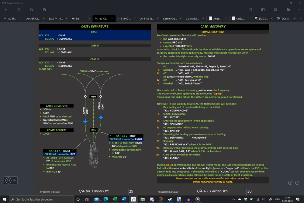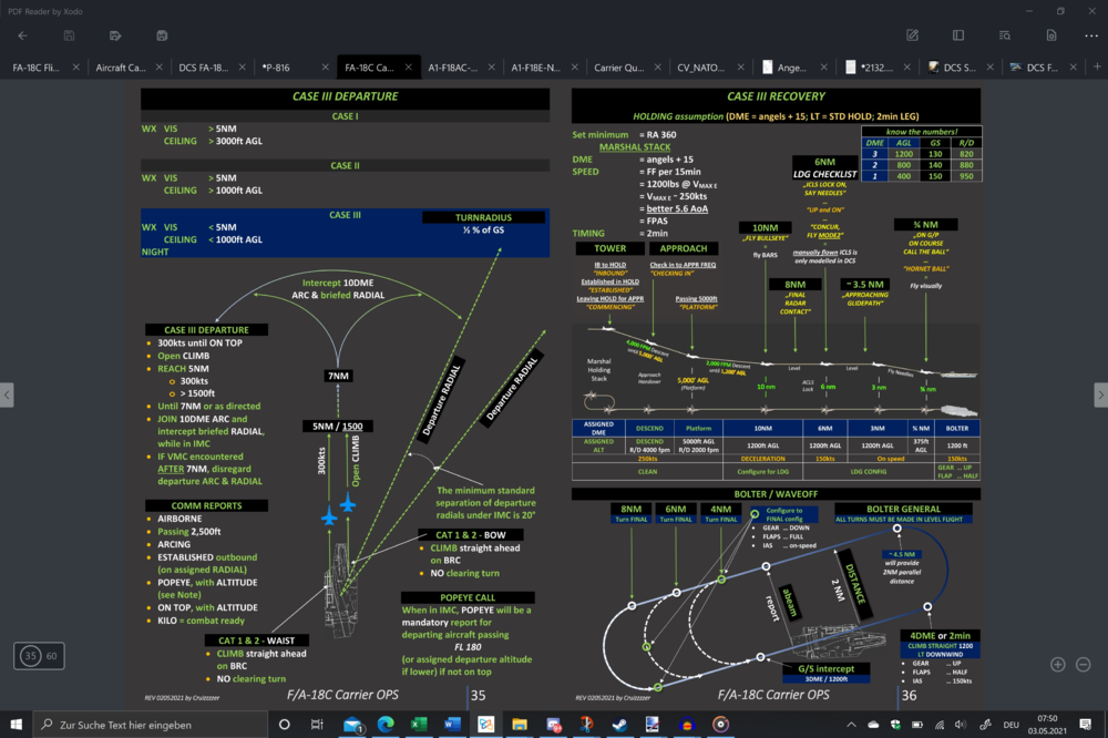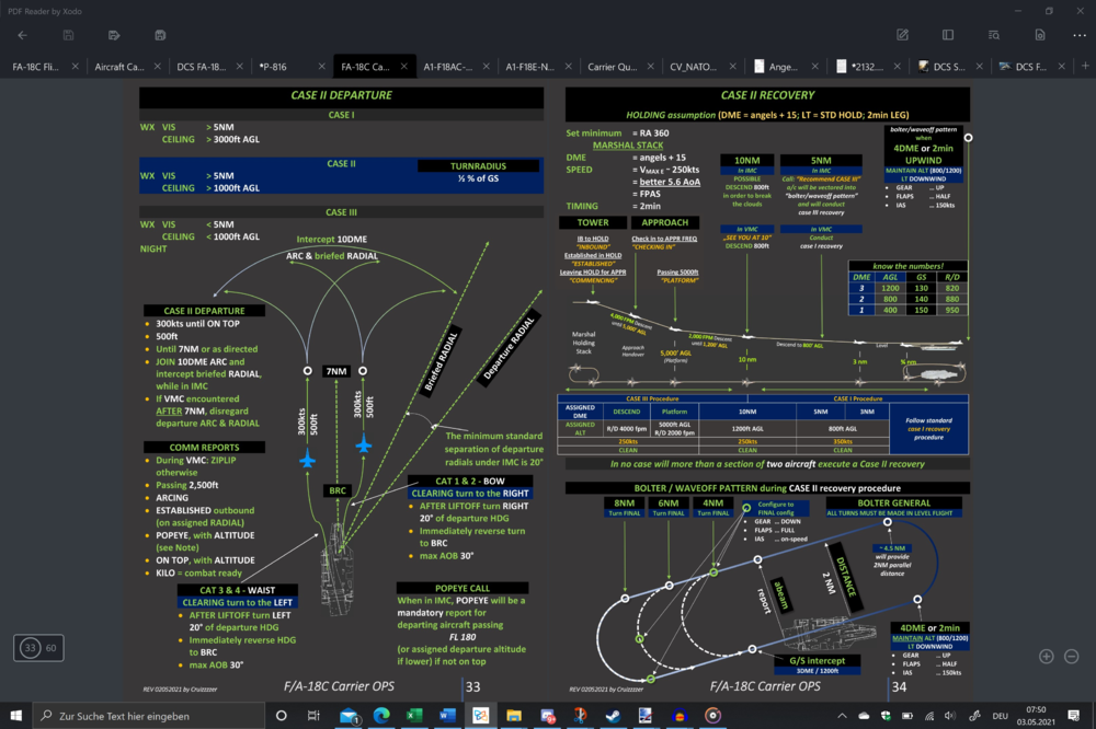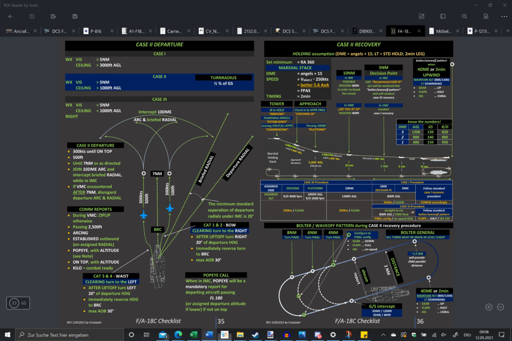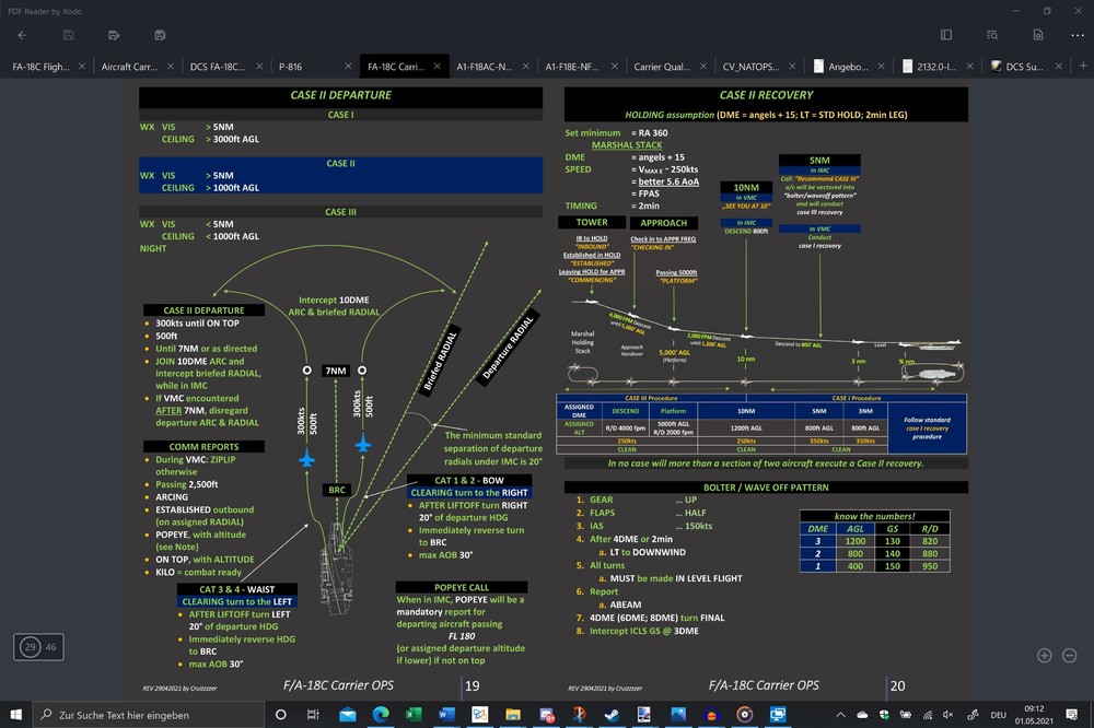 I am writing those manuals myself, trying to get all information for the hornet as close together from original sources available, packed into pdfs and converting them into the kneeboards for ingame use. Chose the background color so its readability in night-ops is given. In the above case it is the case 2 scenario, but got the whole bunch also for case 1 & 3...