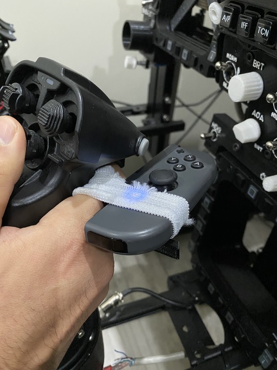 I really enjoy checking in and seeing what everyone else comes up with! Here's my Version 2: Still not the prettiest, but much more compact and gave me a reason to play around with microcontrollers. The board is a Seeed Studio XIAO BLE Sense nRF52840 running CircuitPython 8 and emulating both a keyboard and a mouse. (The chip has an IMU but I haven't integrated it for anything quite yet.) The buttons are a 5-way hat switch: Up is Mouse Wheel Down: Down is Mouse Wheel Up: Left is Left Mouse Click: Right is Right Mouse Click: Press is ESC key. I loved the feel of the haptics on my V1 (Switch Joycon) so I added a small motor that vibrates when I use the buttons. It charges a 50mAh battery via onboard USB-C that I connect with a magnetic cable to reduce wear. It lasts a full day of flying even with the haptics. The ring was 3D printed out of TPU from a Ring Sizer on Thingiverse, It ended up being the perfect mounting system for my needs, so I didn't design anything further.
