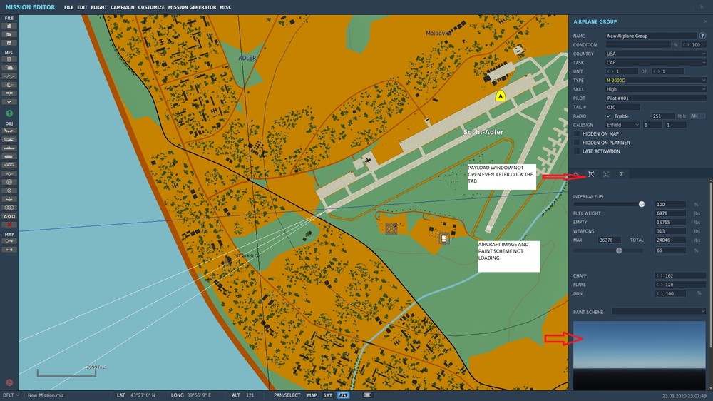 Hello, I am having few issues with Mission Editor, When Mirage 2000 aircraft selected, On the right panel, the image and payload options appear blank, and sometimes even the Aircraft select panel appears blank. ( Attached Images) However, i am able to select other aircraft like F-16 or F-18 and its payload, This issue seems to specific to Mirage 2000, i have run DCS Repair tool few times ,still the issue persists .. and i don't have any mods installed. How to Fix this ? Thanks in Advance.