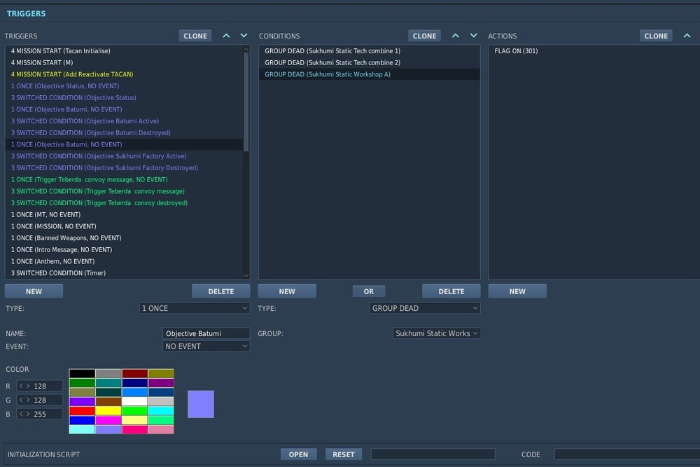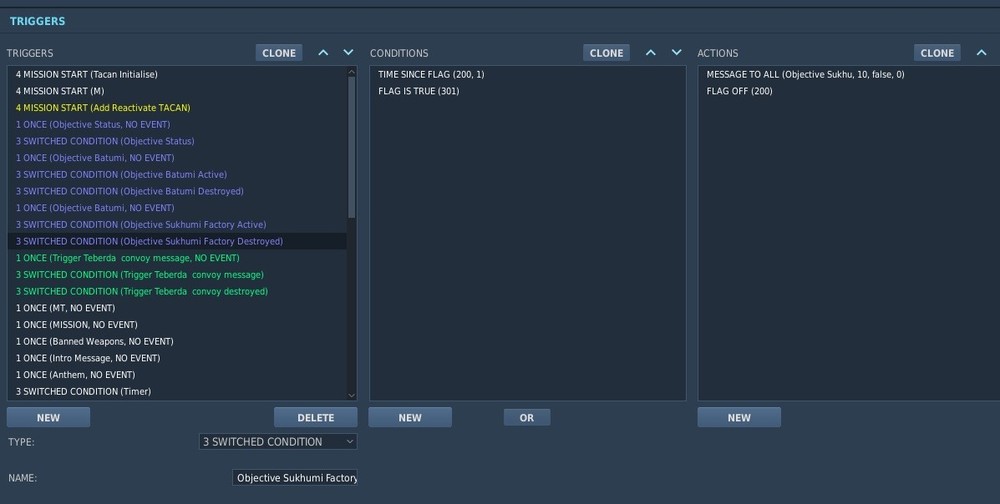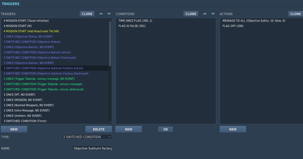 Okay, I do have a question. Is there a way with triggers and flags to create a single list with what is destroyed and a single list with what is still active? I have more then 10 objectives so I am running out of F keys