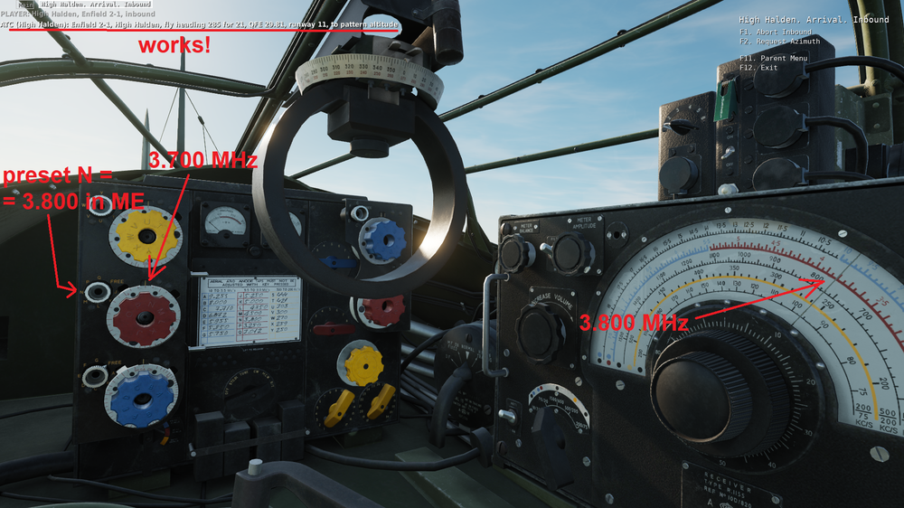 At least the red master oscillator knob on T.1154 is misaligned, i.e. the oscillator will actually produce a different frequency from the frequency suggested on the knob's scale. To make it short: set preset channel N to 3.800 MHz in Mission Editor. Load mission. Select this preset. Move the knob all around and look where it will "click" into the preset position (that's how these presets work). It's gonna be 3.700 MHz as read on the knob's scale. In fact it is 3.800 MHz, you know it because this is the only way you can contact High Halden ATC (the Channel map) who talk on 3.800 MHz. Otherwise, of course, you can't contact them - if you set 3.800 MHz manually, they won't answer, because it's NOT 3.800 MHz. Basically the knob works okay at around 4.000 MHz and NOT okay around 3.800 MHz - that's what I know, because I tested it (English ATC on the Channel map work close to 4.000 and close to 3.800 MHz). The knob may be misaligned also in other "spots" or "ranges" on the scale - haven't tested. Neither do I know if the yellow and blue oscillator knobs are affected as well - haven't tested. Attached are: 1. Very good pictures, which tell more than silly track files. 2. Silly track file to waste time. In the track file I initially slightly mistuned 3.700 and had to correct myself - then I could contact ATC. Later I'm showing where the 3.800 preset ("N") positions the knob. Really, the picture is waaay better. 3. The mission - it's easiest to pick Mossie "Rwy hot" at High Halden. _channel_sightseeing.miz 3700_kHz_equals_3800_kHz.trk