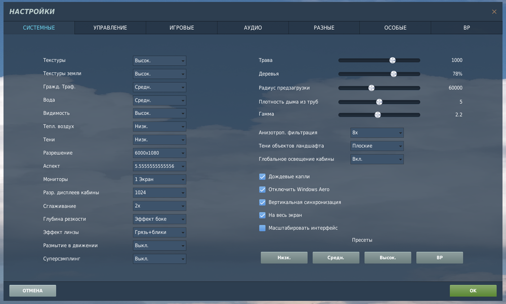 У тебя в настройках DCS стоят 3 экрана, а у меня 1 экран. У тебя нереальное искажение горизонта и бокового обзора! У меня 3 монитора Beng XL2720 NV Surround разрешение 6000 x 1080 (с коррекцией по рамке) которые поддерживают стереоскопический режим 3D (NVIDIA 3D VISION READY) и в настройках DCS установлен 1 экран. Могу насладиться полётом в кабине с эффектом 3D VISION READY (3D поддерживается только с настройками 1 экран и на весь экран) поэтому ЗУМА ни хватает чтобы отдалить приборную доску и это хоть в стерео хоть в моно. Мои скрины https://forums.eagle.ru/showthread.php?t=228219