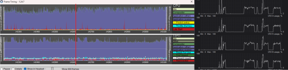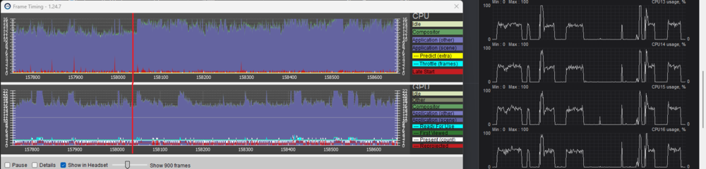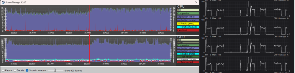 So, after some more testing including the fix some users like @edmuss have been posting about regarding motion reprojection (where you set SteamVR as runtime in SteamVR first before switching to purely OXR and setting it back as the runtime), I can now say that I stand corrected in seeing the performance jumps and decreased frametimes. Using the OXR Dev Tools and locking the reprojection to 45 or 30 FPS instead of it being unlocked also seemed to fix the artifacting/tearing around the edges of the displays when OXR switches the MR framerate. I also think that the OXR reprojection (when locked) looks incredibly similar to SteamVR's (Forced On) if not better because of the way it handles not being able to hit the reprojection target (ex. going down to 39 FPS from a stable 45 FPS doesn't look as jarring compared to SteamVR). Honestly, I'm very happy with the way this is implemented and regret initially dismissing the OXR fix as failed for my setup. @nikoel, can you please add a note in the first post regarding the reprojection fix for users that have a G2 and been having issues with going from SVR Motion Smoothing to OXR Reprojection? Save them the trouble of having to scroll through nearly 20 pages. -