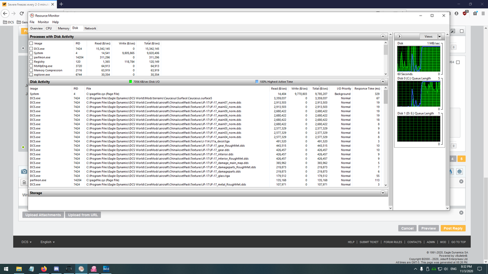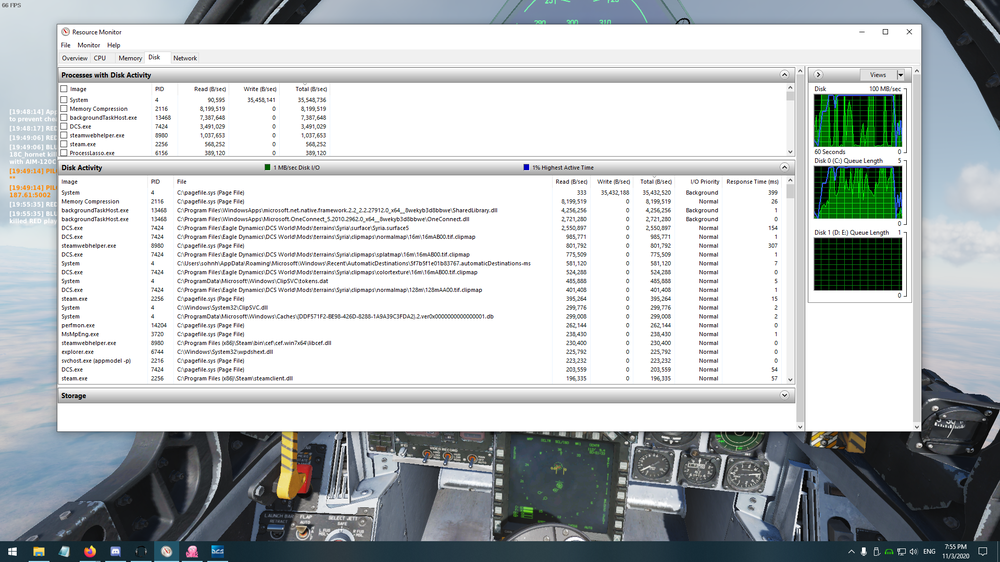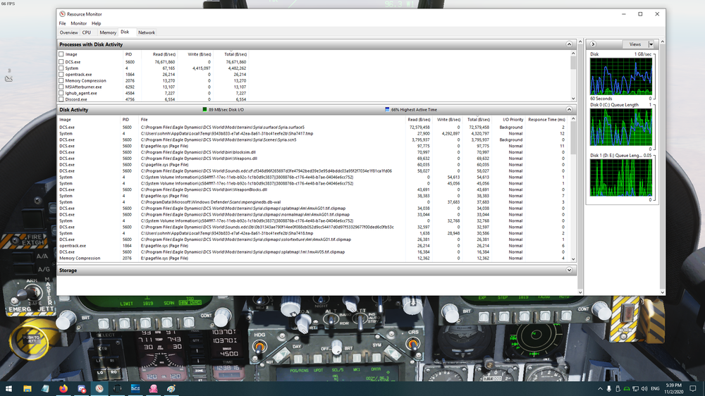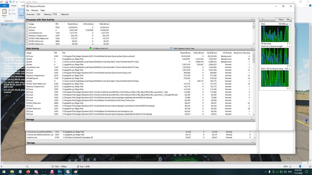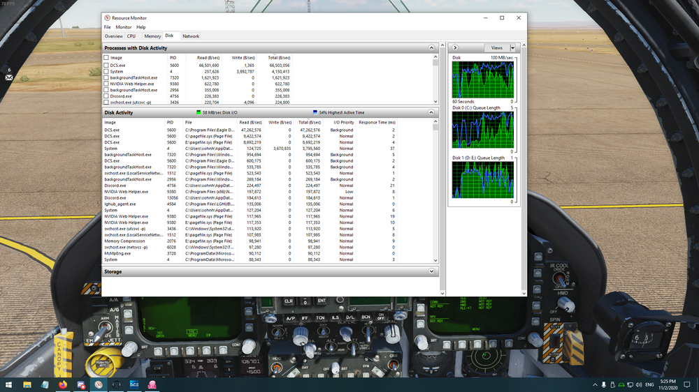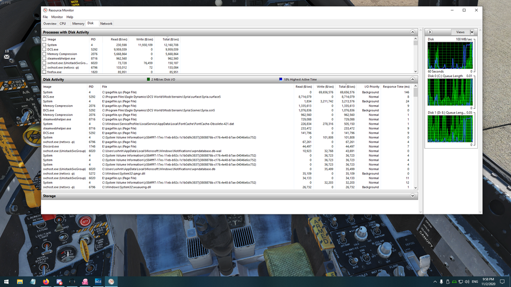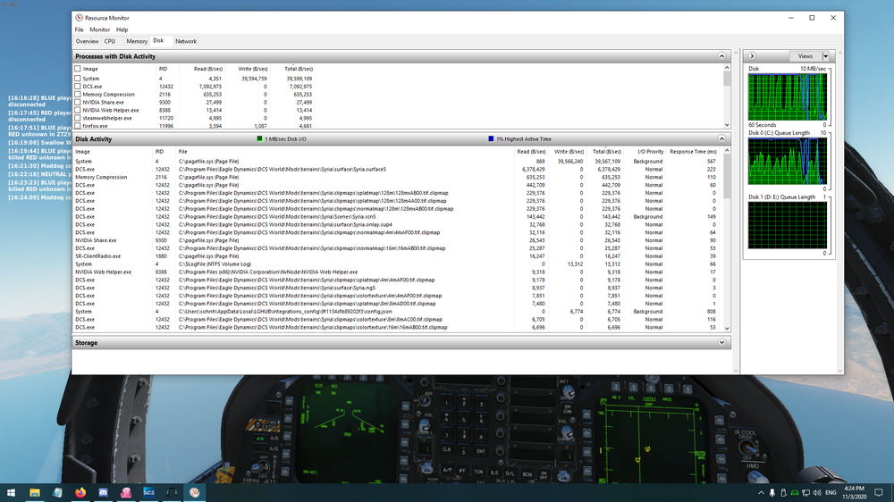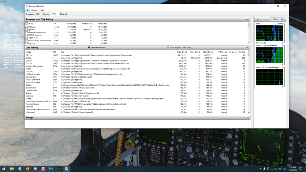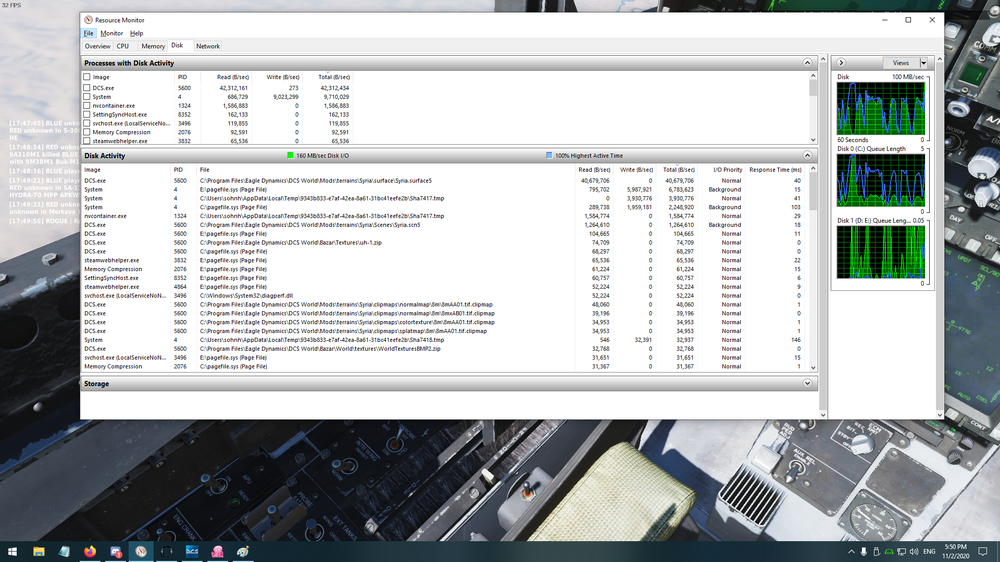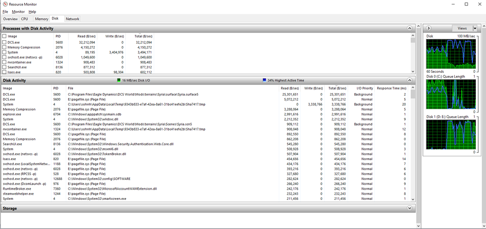 Testing was done on Syria, but the stuttering is consistent on Caucasus and Persian Gulf as well. **This was done with Nvidia Share both on and off, with no appreciable difference.** I have tried deleting my fxo and metashaders2 folders in the past, again, with seemingly no gain. Deleting the contents of the NV_Cache folder is something I had yet to try but after doing so I was still getting the stuttering. Edit: All screenshots were taking during or 1-2 seconds after the stuttering (which themselves lasted minimum of 2, upwards of 15 seconds) Edit 2: D: is Windows System reserved partition (which should be a part of my SSD (C: )), E: is my HDD **Turns out, Nvidia Share continued to run and record in the background despite me turning instant replay off and making sure it wasn't recording so these results are somewhat invalidated