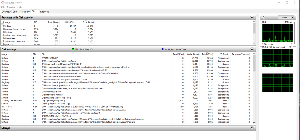 I'm reading online that this temp directory in my AppData that's using up my disk read/write is related to Nvidia Shadowplay/Share, I thought I had disabled it but somehow it continued running in the background. I may try uninstalling it. Will report back with results once again. Here are the relevant threads I found this info in: https://www.reddit.com/r/techsupport..._emptying_out/ https://www.reddit.com/r/techsupport...d_drive_and_i/