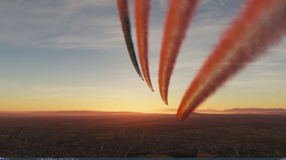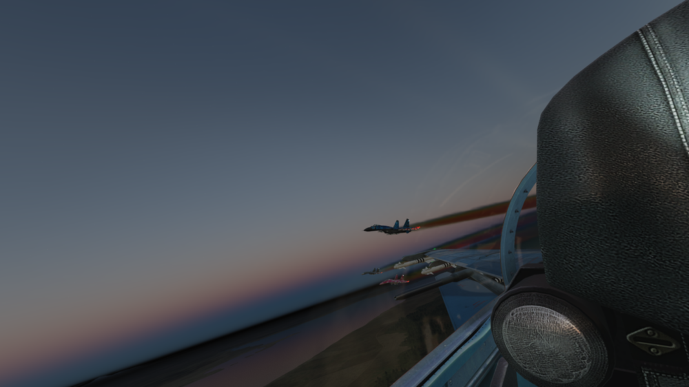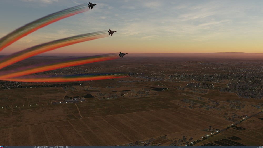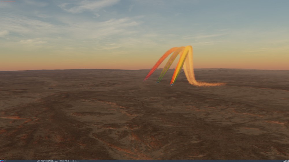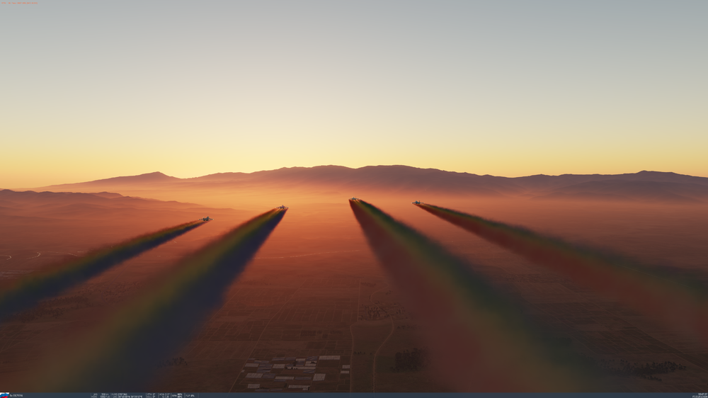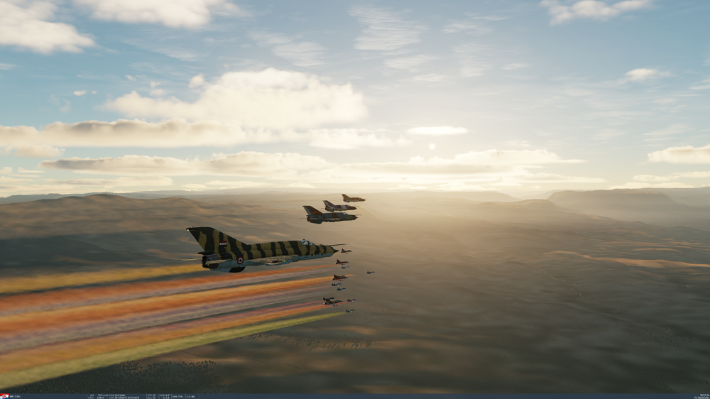 Hi all, tried to post here several times, just moving pics in the text-box, hope now I found the right way... Swarm is called "Rainbow1" and it´s Atze in the Syria SU-33, then Hans in the IceWolf, Helmut in Pinkie and Holgi in the Bundeswehr. Not easy to keep them together all the time, u have to lead them constantly so they don´t need too much fuel for maneuvers... I was surprized how easy it is, well, if u have some time and some interest (lol)... Guess I will accompany this sim for a longer time... Thx to all those professional painters who did the wonderful skins, I love it. Seems to be an active community here, great... Greets from Atze