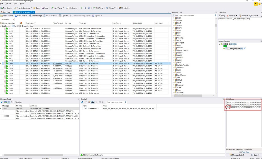 Hi Chakko, I suspect SV Mapper doesn't recognize the button press correctly, I used Microsoft Message Analyzer - MMA to capture the USb device HID packages and I can see the HID report is correct. Attached is the screen capture, the lower right window is the HID Input report, as you can see we have 48 bytes, the first 16 bytes are the 8 axis, the 17~32 bytes are the button value for Pin 22~29, the 33~48 bytes are the button value for Pin 30~37. I shortcut the pin30 and pin38, so byte 33's value is 0x01. And all else are 0 which means no button were pressed. I'm thinking it might be better to test it under FSUIPC directly. Or you can use MMA to test your button directly. Please watch the 2 video tutorial first, the MMA GUI is not that straightforward as I expected. https://msdn.microsoft.com/en-us/library/windows/hardware/dn741264%28v=vs.85%29.aspx -