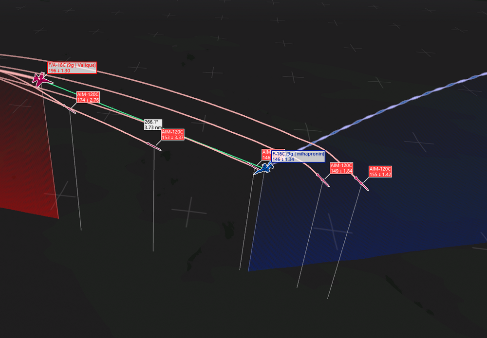 Проанализировал приложенный трек. Первая серия из 5 ракет, все ракеты пущены с дистанций от 8.5 до 4.5 nm, высота около 20 000 ft, ракурс - на цель, цель также не фланкует. Энергии у ракет с запасом 1 ракета: ролл + перегрузка не более 1.2g 2 ракета: ролл + перегрузка в районе 2 g 3 ракета: ролл + перегрузка око 3g (уже веселее, но, кажется, ещё детская перегрузка для ракеты) 4 ракета: ролл + перегрузка 2.2 g 5 ракета: ролл + перегрузка 1.2 g Делаю вывод: продемонстрирован уход от ракеты простым роллом, без серьёзных перегрузок, при условии, что у ракеты достаточно энергии