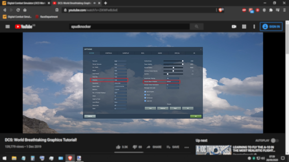 I've just viewed your settings and something isn't right here... You say you have a 1080ti...? Now forgive me but... Try using the SU-25 on the Caucasus map with those settings; ly over trees very low (About 10-20ft above the tree tops and in doing so, look directly towards the ground from the side doing a 50-80 banked turn... My fps, with my system, drops from 60fps (vsync) to 30fps! It's nothing to to with my system specs, something (mostly shadows/SSAA/MSAA/heatblur)...those must be having a profound affect...god only knows why! FYI - My system is brand new...less than a week old and has no dust whatsoever...so it's not overheating at all. Even the temps are low on everything!. I don't have page filing on either