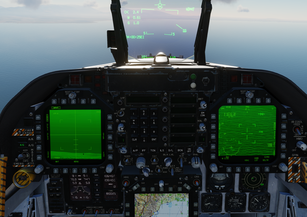 > Do you have an advisory on the left DDI, like P/INS by chance? Is your INS knob in the NAV or IFA position? HSI shows P/INS and the INS nob is on NAV position. And on the left DDI, there's no other info other than: "ADV-": -