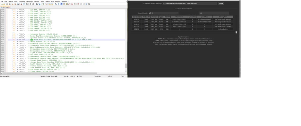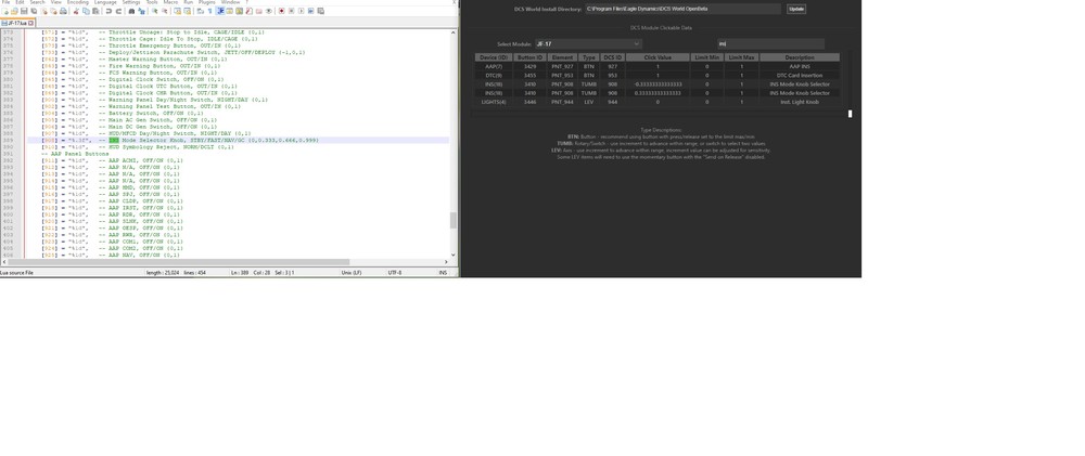 I am building a profile for the JF-17 for the Stream Deck XL I ran into issue with INS Mode knob selector and ECS Mode knob selector the both knob have different values than in the Stream deck interface ID lookup. When I added the both knobs into stream deck seems to work for a sec then just messes up the whole profile and need to restart everything. JF-17.lua