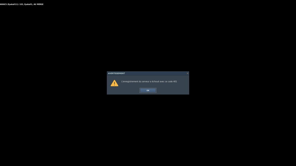 After a few minutes hosting a multiplayer mission, I've got an error message "l'enregistrement du serveur a échoué avec ce code 401", followed by a game crash... dcs.log
