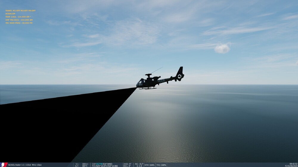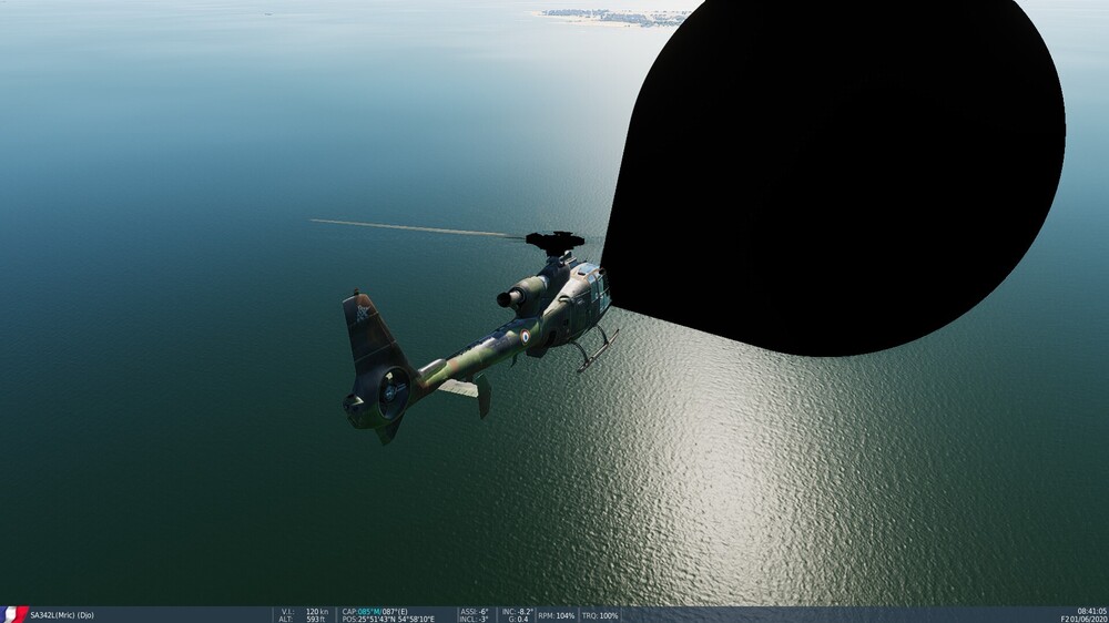 There is no suspense, all modules are affected! I was approaching in Mirage F1 and I had a black wall in front of my eyes. I turned off my landing lights, the view came back briefly before everything went black again and I crashed my aircraft. LastMissionTrack.trk