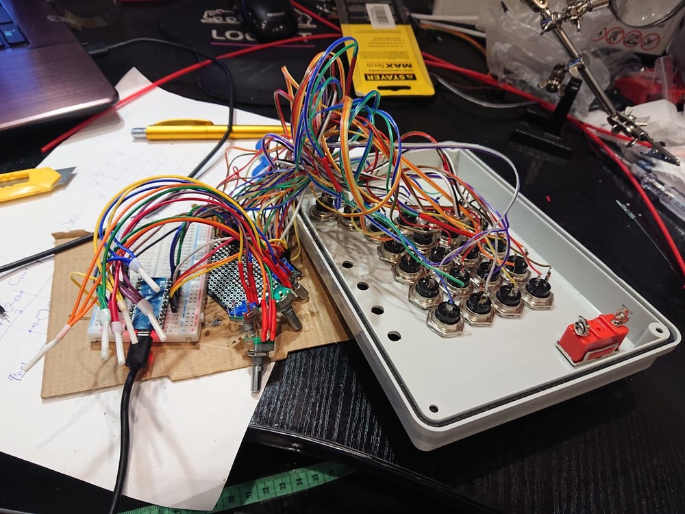 А не знаю пока. Сначала подключу один потенциометр и одну кнопку. Как заставлю это работать, буду думать про компоновку. По крайней мере хочется вынести управление светом, автопилотом, шасси, парашют, может ещё как-то джойстик разгружу. А то на моем сайтек 52 три режима и шифт - очень много всего понапихано. Неудобно. Посмотрю, сколько осей понадобится, остальное на кнопки пущу.