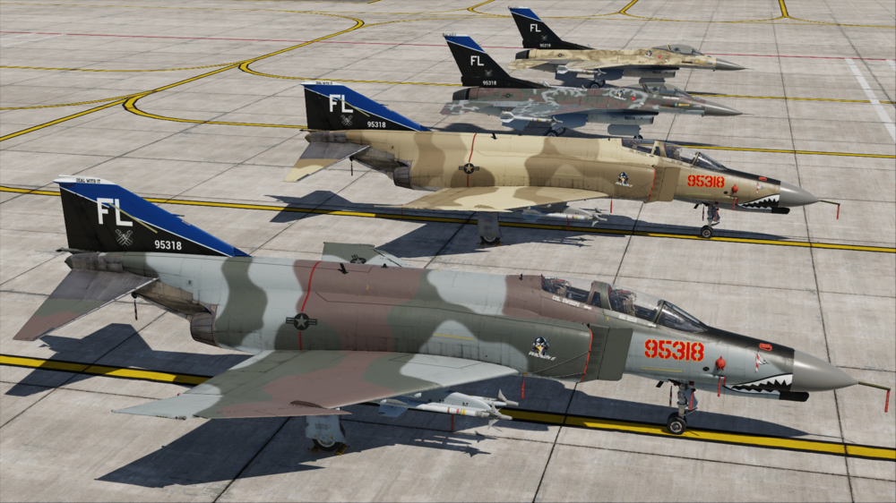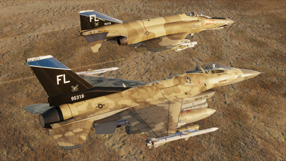 A friend of mine Awacs_Bandog has created some awesome looking Liveries for me and my YT channel. The guy is a true master at making these liveries! He took some ideas we had and turned them into art! Really awesome stuff. He started with a F16C livery with a European color scheme then made a desert one as well then did the F4E Phantom II liveries! He has some really fantastic liveries up on the DCS Files server if you’re looking for some nice liveries. I highly recommend his work!