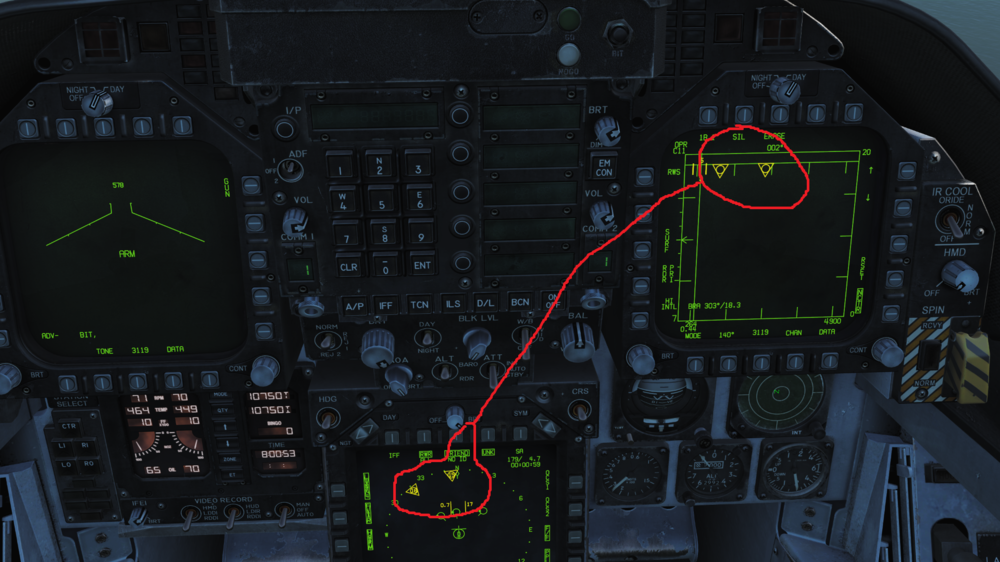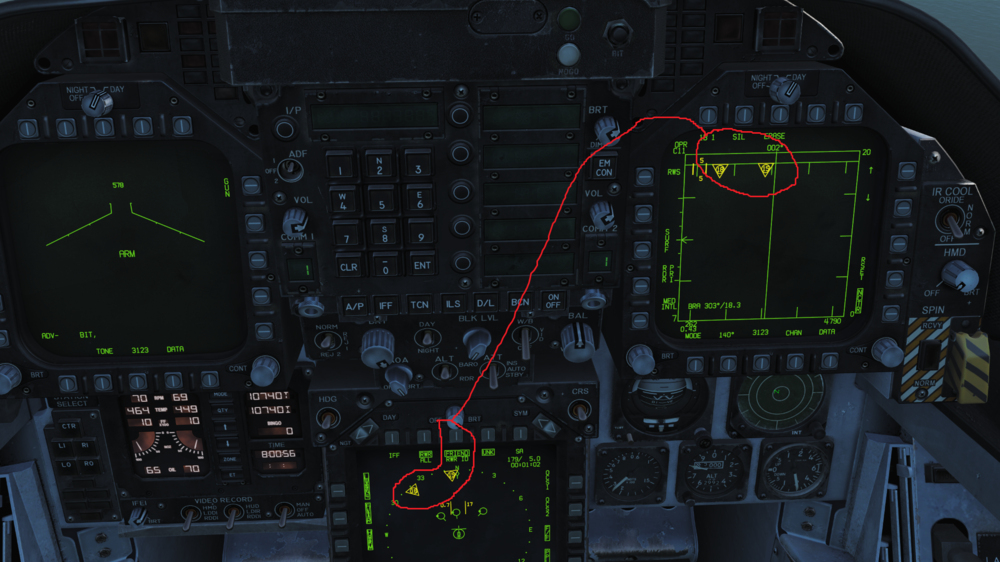There's been a bug with the SA page since it was first introduced. The 'Friend' RWR option doesn't properly change the yellow RWR triangles. 'NO ID' still shows the friendly A/C ID in the triangle, it behaves exactly like the 'RWR ID' option - it shouldn't. The new MSI RWR indications on the radar display do actually follow the correct logic. Please see screen shots below and attached track. SA RWR bug .trk