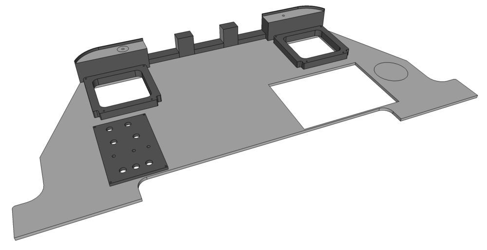 @Duckling: These panels are just "mockups" to flesh out my CAD design and test my software. My CNC is nearly complete, lacking only a speed controller to be able to mill plastic effectively (20,000 RPM + plastic = melted mess). The final panels will be fabricated/engraved by CNC to look like the CAD design.