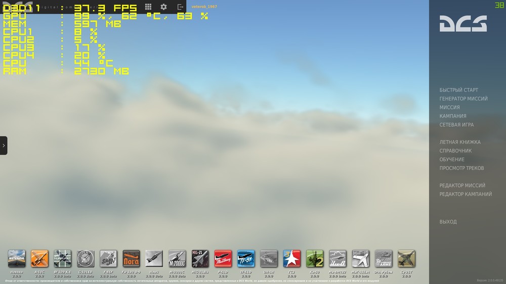Версия 2.0.0.49135.72. Миссия или трек не запускаются кнопкой Pause, только мышкой. При просмотре трека комп переходит в спящий режим. И не знаю на сколько это баг, но обратите внимание на загрузку памяти видео, и оперативной памяти. После запуска игры: В полёте, специально выбрал самое загруженное место: и через 10 минут после вылета
