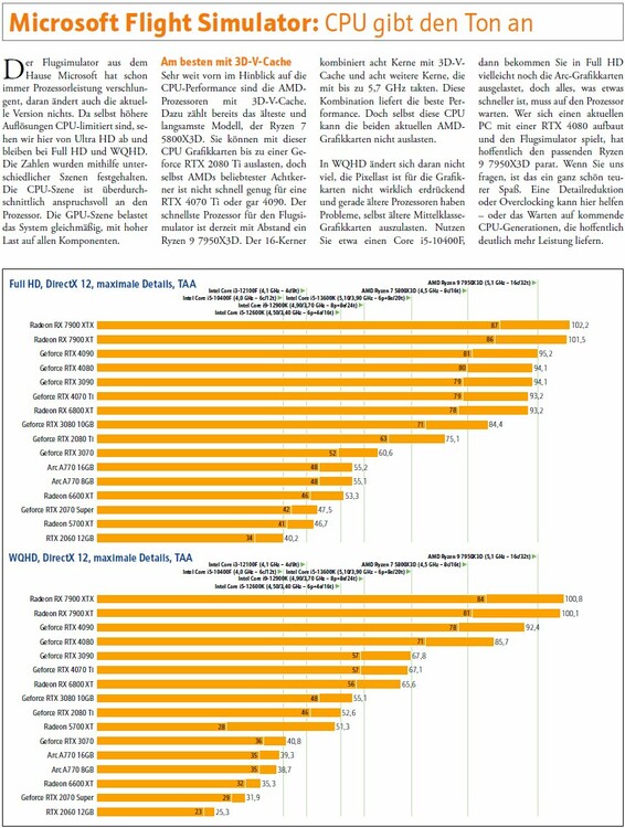It seems that AMD 7950X3D + AMD RX 7900XTX making more FPS in Microsoft Flightsim than AMD 7950X3D + Nvidia RTX 4090 in this spezial CPU-GPU comparison-benchmark (PC Games Hardware 05/23). So probably RX 7900XTX is the much more better choice for DCS World too??? -