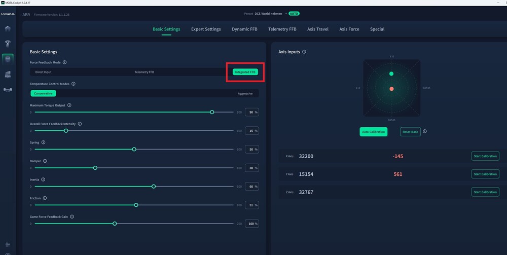 Hello, is it only me or is there a huge bug that the force feedback trim is not working anymore in DCS World 2.9.13.6818? In settings "no spring and FFB" is set and "force feedback" is activated. Tried the two other trim settings too... All other force feedback effects are working without any issues so far except the most important helicopter-trim to move the joystick and hold its position for which i bought all this expensive stuff. This makes me really crazy... I additionally tested with Microsoft Sidewinder 2 FFB to see if it is maybe only a MOZA problem but it is not. Same here then... MOZA AB9 Base is updated with latest firmware of course and using activated "telemetry FFB" for DCS World. Is this a known bug and how can this be solved? THX so far Best regards, Terrorvogel