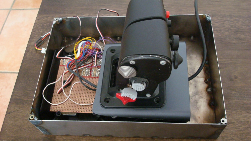 Nice work PeterP:thumbup: Great idea with that twistgrip/potentiometer solution! I´m searching for a similar solution for that, because i´m building a collectivelever too at the moment. This gives me a very nice inspiration! Currently i´m playing arround with a scooter-twistgrip which has hallsensor integrated, but there are currently some sensor´s compatibility problems with my BU0836A. May i ask you a question for understanding the fundamental functionality of the collective lever in reality? My momentary solution is, that if the collective-brake-handle is beeing pusched up, a physical diskbrake is stopping any movement and a reed-switch is sending "assign altitude" to AP. There is a mechanism that locks the break-handle at about 80% moving it up. If pushing the break-handle further up, the mechanism unlocks and the diskbrake releases again (reed-switch disconnects and stopping "assign altitude"). I mistakenly thought this behaviour will be right in real life. Now i see, your sollution is, that your collectivlever is always "locked" exept of pushing the collective-brake-handle, which is completely inverse to mine. I´m still not finished with my lever, so changes are still possible and i don´t want to make a fundamental mistake. So i hope you can help me to clarify this. Can you tell me where you have bought the sprockets for the twistgrip handle? Ebääääh/ Conrad? Regards Terrorvogel