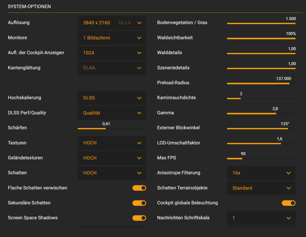 OK, so DLSS probably not going to do much for you tbh. Can still use DLAA far better than MSAA especially in VR Now this is starting to confuse me. I started without VR in UHD (all cranked up) and now I am GPU bound. How can I be CPU bound in VR and GPU bound in UHD? I also checked whether the correct cores are parked (the X3D issue) which is the case. It also confuses me that you play with DLAA and Aero and I play with DLSS and PCL; if I play with DLAA, it becomes to slow, although PCL has a lower Res than Aero. nullSettings below. I also Pimax set to Central Priority Rendering Balanced and otherwise to its default resolutio. nullnull