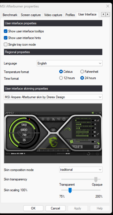 There is a pretty nice tutorial on Youtube for 3080 / 3090: Try choosing another skin inside MSI Afterburner settings (Tab User Interface), using that right now: