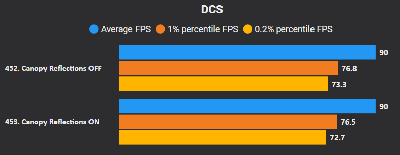 Canopy Reflections I used to use Taz's Clearglass mod to reduce the reflections, which gave me back around 2.5 FPS. Can't run this mod on the server, but luckily @Kbu (thanks!!) mentioned that DCS has this option now in-game, so I tried it. Will have to change some other visual settings to reduce some fps and see the difference more clearly between ON/OFF, the difference currently looks negligible. null