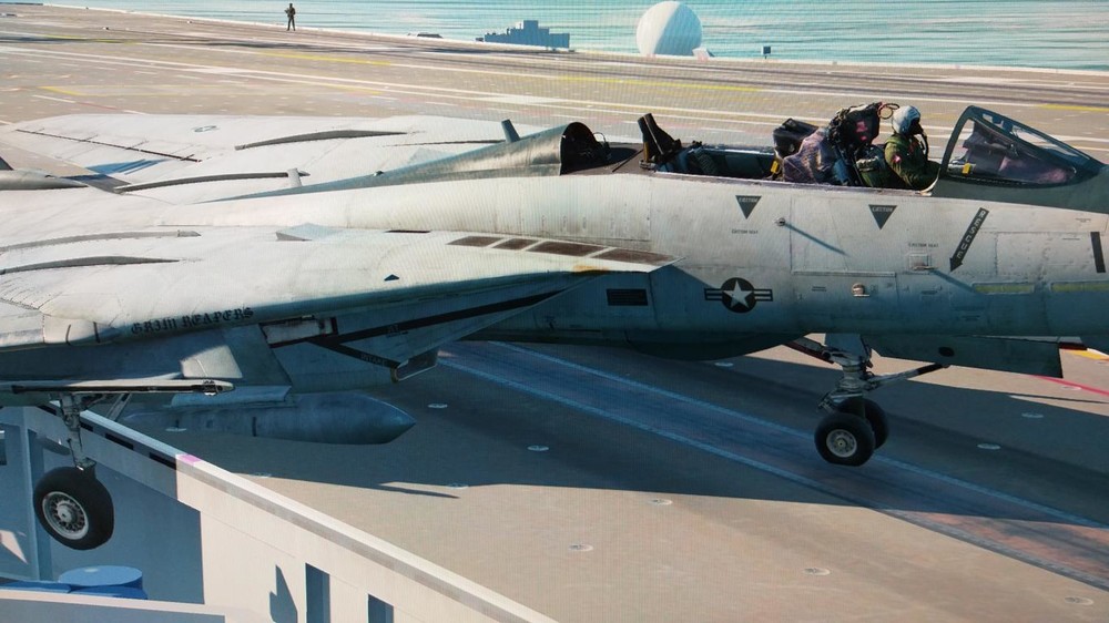 Hallo, heute Abend passiert: Seit längerem versuche ich, einen Katapult-Start auf dem Flugzeugträger mit der F 14 hinzukriegen. Verzweifle aber, die Maschine auf den "Schlitten" zu bekommen. So auch heute. Zu hohe Geschwindigkeit, zu nah am Rand des Flugzeugträgers, zu enge Kurve und dann rutschte der Jet mit dem rechten Hinterrad über das Deck hinaus und blieb stecken. Lauter Knall, da war auch schon mein "künstlicher" Co-Pilot per Schleudersitz draußen ... Memme !!! Alles ging sehr schnell, habe noch den Schleudersitz gesehen, der aus dem Cockpit per Feuerstrahl rausging, und dann meinen Co., der dann per Fallschirm ins Wasser ging. Foto zeigt den Jet mit abgesprengter Cockpithaube und leerem Co-Pilotensitz. Nur Horsti sitzt noch im Flugzeug ... Wirklich realitätsnah! Gruß an die Entwickler! Viele Grüße Horst