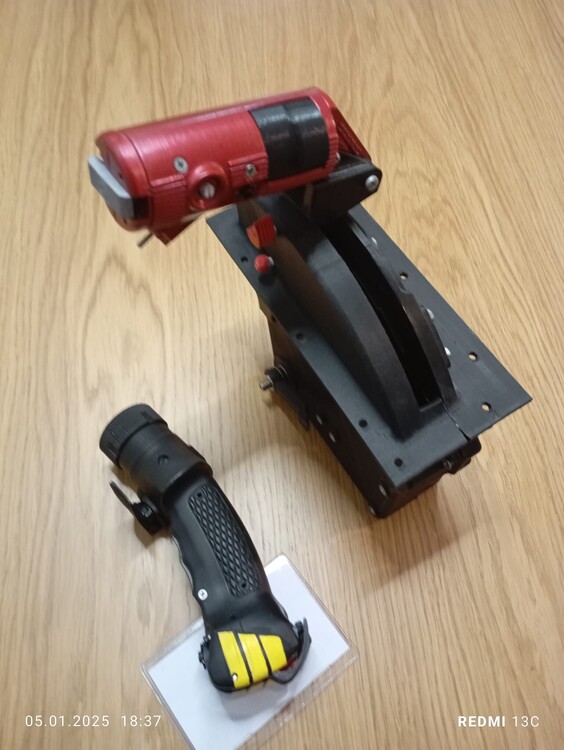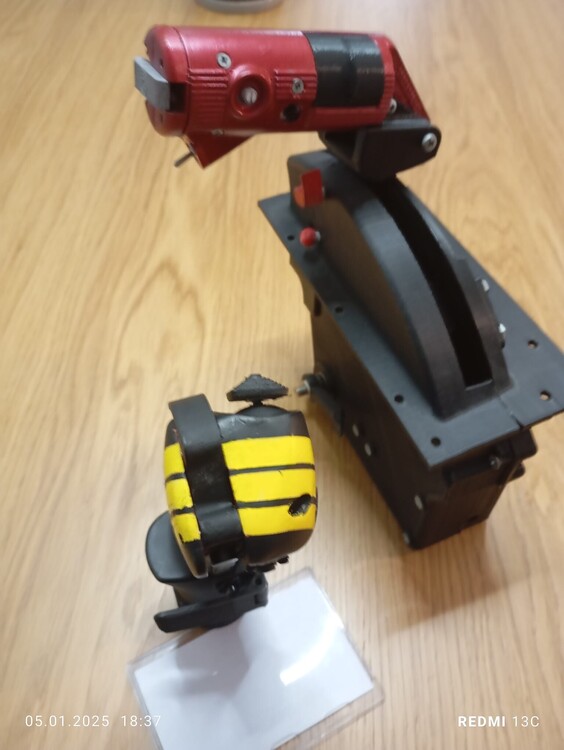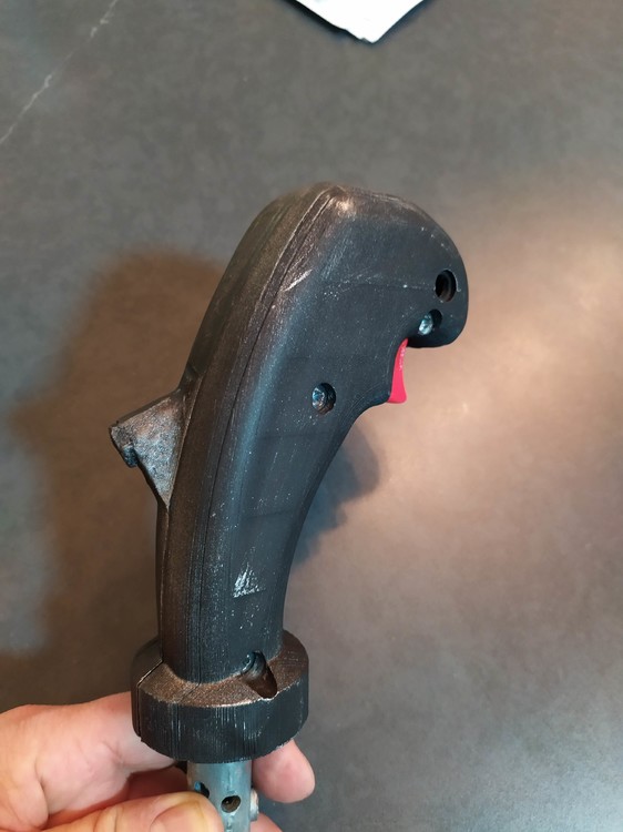 Hi all, Want to update about work in progress on the HCU stick. Finished the design and printed the prototype. Assembled it with 2 miicroswitch for the two stage trigger and with encoder for the radar antenna. Two red buttons are missing but I've order them from ebay. Painted the stick with 2 colours to make it look like an old stick. Here are some photos: