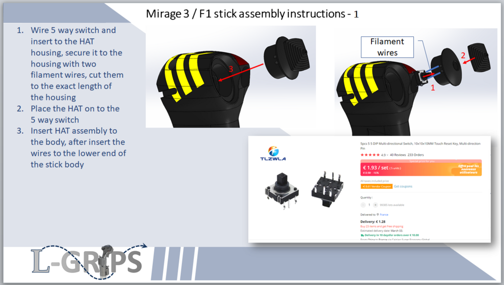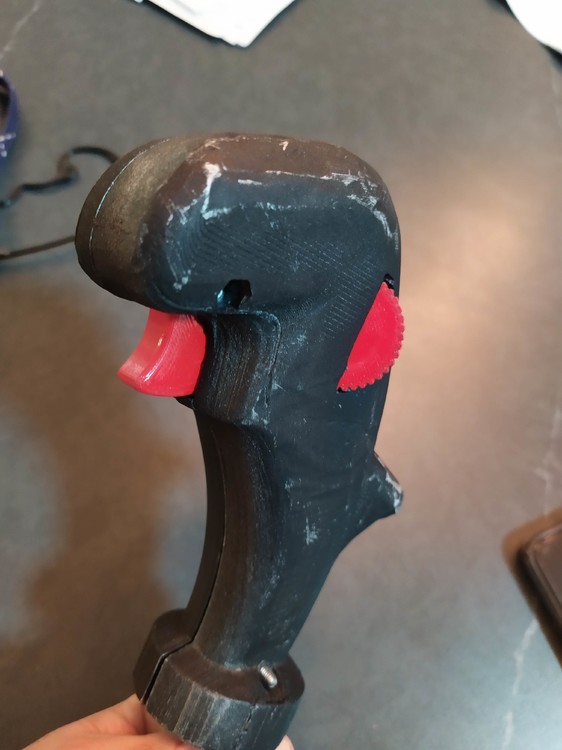 Hi all, Just want to share one of my projects: 3D printable M2000 stick with electronic part suitable for simulation (interface for TM thread) The dimensions are very close to the real thing (except the AP lever that does not there ). Use with very simple commercial micro-switches and toggles. You can get it here: https://www.cgtrader.com/3d-print-models/hobby-diy/other/mirage-2000-stick-for-simulation-with-all-buttons-and-switches