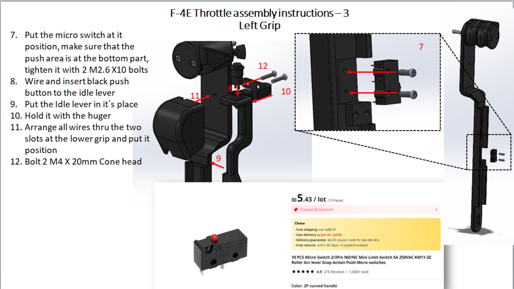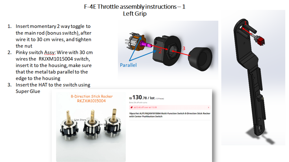 Hello, Want to share one of my projects: 3D printing cyclic for DCS AH-64D. I have design based on pictures a 3D model which can be print, assemble and wire with simple commercial components. The model is available here: https://www.cgtrader.com/3d-print-models/hobby-diy/other/ah-64d-apache-cyclic-3d-printing-model-with-electric-componenets