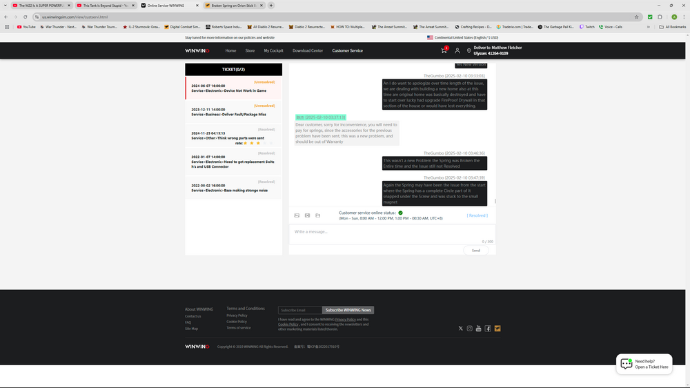 Hello Guys so had spring Break on the Orion as well but noticed some people are using the Older Version of the Device, can anyone got a Source where can get replacements they are not the same as the Older Version of the Orion. You can see how in the old version the notch in the new version that the springs opening catch's to, and in the new Version the Notch is removed and that raised Circle is put in place of notch with hole in it, the springs opening sits around the raised circle and then the Screw screws into that circle. WinWing trying to charge me for them and I refuse to pay because I am still under warranty and they don't want to send me replacement Springs because they already had to replace the entire Guts because they didn't listen the first time when I told them it was a bad Haul Sensor, so they sent me new Board and Wires which I replaced didn't fix the issue which I also offered to ship them the device to fix which they wouldn't do but after a month of back and forth they finally sent me the Haul Sensor and now refuse to send me Springs unless I pay for them because they sent all those other Parts. WinWing a Good Company to a Point like most others the issue is they think they know more than the people using the devices which as you can see they do not and now hold me responsible for their Fk up and I refuse to pay them for the springs while the device is still under warranty. Here is Picture of old and new Version of the Orions cams and springs, Also added Pic of Conversation with WinWing and them telling me I had to pay for springs lol Sure I will get right on that for you! But if anyone knows were I can get the Correct Springs please let me know the Libra Springs wont work they are to Tight and thank you all. null