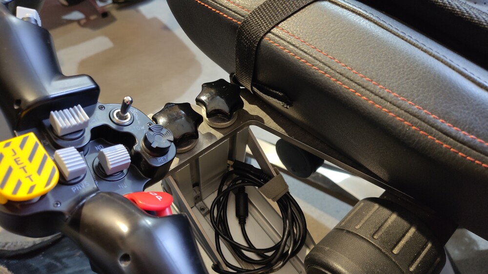 Soooo, dann zeige ich mal mein Lösung ist eigentlich recht simpel. 40x80er Profile am Winkel zur Sicherheit noch etwas abgestützt. Am Stuhl sind Platten von Montertech, mit den M8 Rendelschrauben kannst du das ganze in 30 sek. montieren. Das geile ist das ich hier alles völlig stufenlos auf mich einstellen kann Was ich noch gemacht habe, in der Base des Kollektiv selbst habe ich eine Schraube in die Laufbuchse eingedreht. so dass der Kollektiv jetzt nur etwa 20 Grad bewegung ermöglicht. Damit lässt sich das super fliegen. Hoffe das hilft dir weiter :)