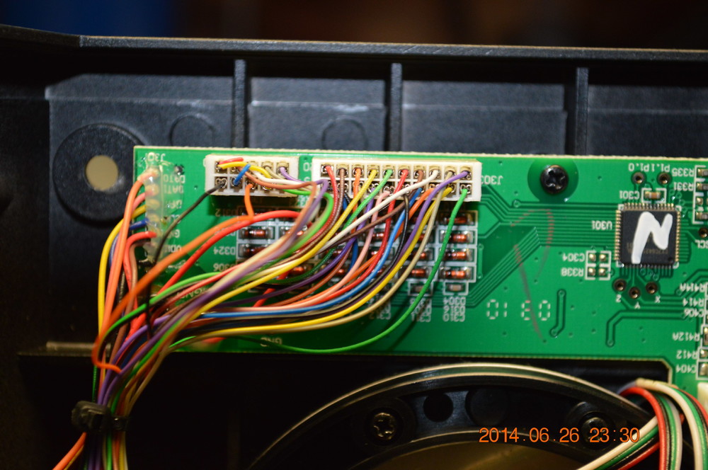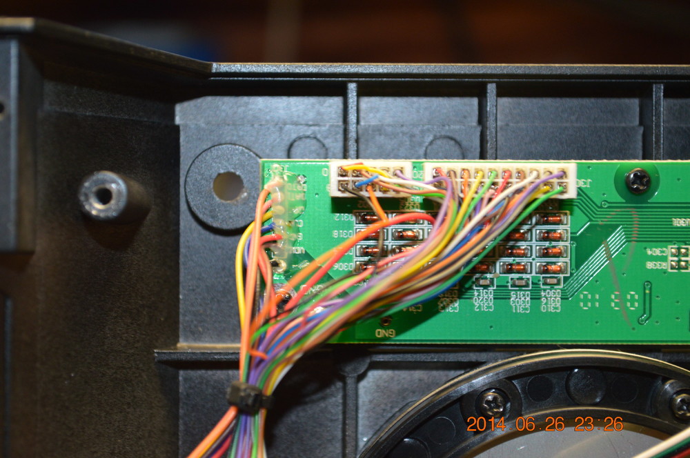 1. it's opened Here are a few pics of the wiring for the X65 stick. As for the b button , I am not sure which one is which but i found all of the orange wires and now all you have to do is find where the orange wire is not. Pic 1 orange wire belongs third slot to the left on the bottom row of the short connector group. Pic two orange wire belongs in slot three from the left on the top row of the longer connector group. Pic three orange wire third from the RIGHT bottom row of the longer connection group. Hope this helps.