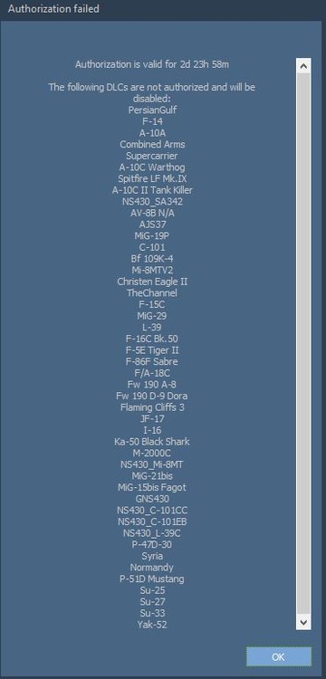 Au démarrage de DCS, le logiciel me demande des numéros de série pour plusieurs modules alors que je ne les ai jamais acheté.