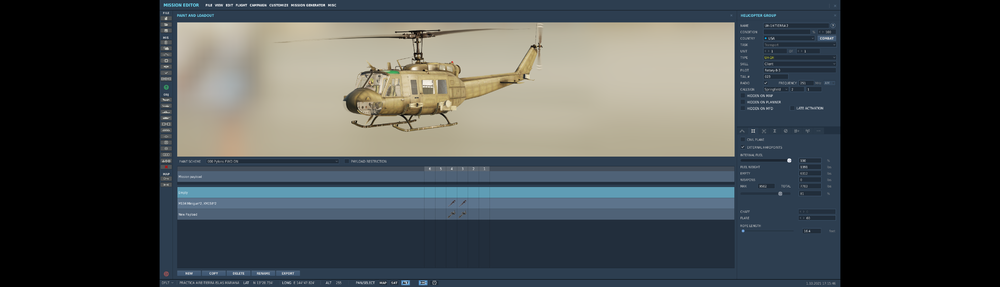 Buenas tardes a todos los miembros de DCS World!! Me gustaría saber si alguien tiene la información numérica acerca de los soportes de armamentos para añadirlos al LUA. Actualmente estoy investigando y haciendo ensayos de prueba para ver si logro quitar los soportes de armamento SIN TENER QUE REMOVER los cortacables del helicóptero, pues la verdad me parece que le quitan un aspecto muy bonito al modelo. A continuación dejo algunos ejemplos de lo que he podido lograr y espero que les pueda servir, sin embargo, me hace falta averiguar cual es el código numérico para quitar el soporte de armamento trasero. GRACIAS! ________________________________________________________________________________________ CÓDIGOS NUMÉRICOS PARA REMOVER SOPORTE DE ARMAMENTO DELANTERO: custom_args = { [310] = 1.000, -- off } ________________________________________________________________________________________ CÓDIGOS NUMÉRICOS PARA COLOCAR SOPORTE DE ARMAMENTO DELANTERO: custom_args = { [310] = 0.000, -- on } _________________________________________________________________________________________ NOTA: ESTARÍA MUY AGRADECIDO SI ME PUEDEN AYUDAR A SABER CÚAL ES EL CODIGO PARA REMOVER EL SOPORTE DE ARMAMENTO TRASERO.