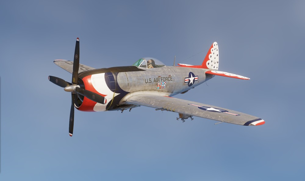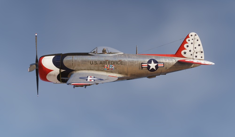 Time for an airshow. I present the Forgotten Thunderbird. A fictional skin for the P-47D based on the early F-84F & G Thunderbirds. Enjoy! *Updated* Thanks to Barret_g for his help. Changes: - Removed the red warning band behind the cockpit (used on jets for turbine failure). - Updated flags to better represent the Thunderbirds early tours. Link: https://www.digitalcombatsimulator.com/en/files/3315156/ -