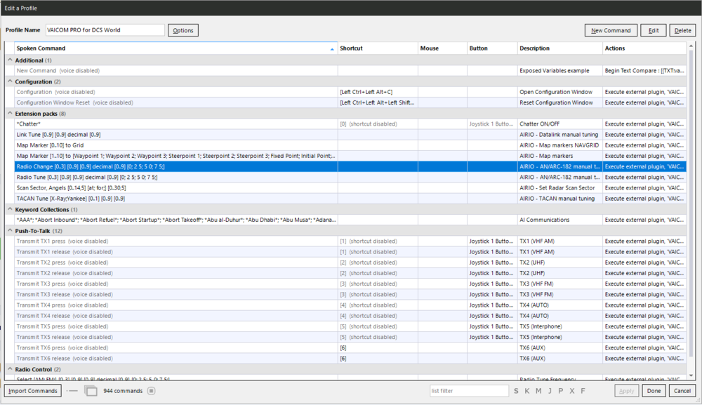 I thought that resetting the LUA code would fix the problem to no avail. This is what my voiceattack looks like when I try to say "radio tune 1 2 5 decimal 0"