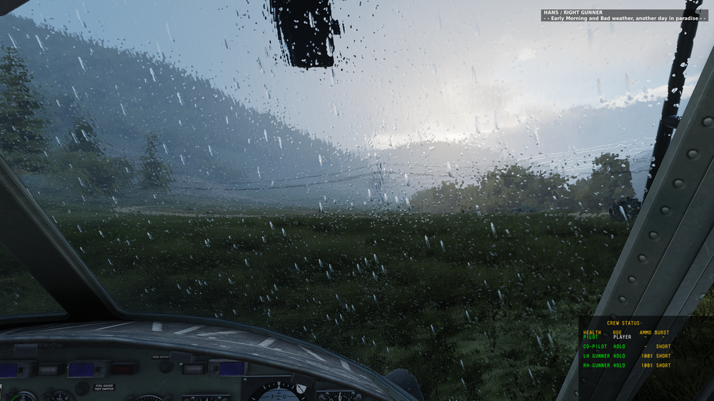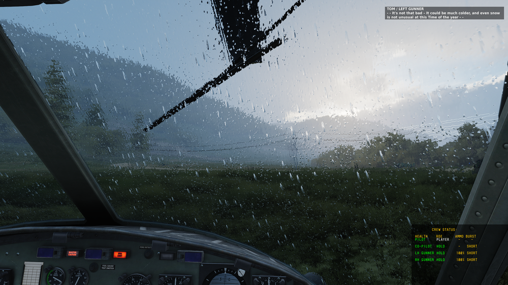 UH-1 has windscreen wipers but they do not offer any help? Switching them on and off really only adds an animation, not help visibility? Second image has wipers on.