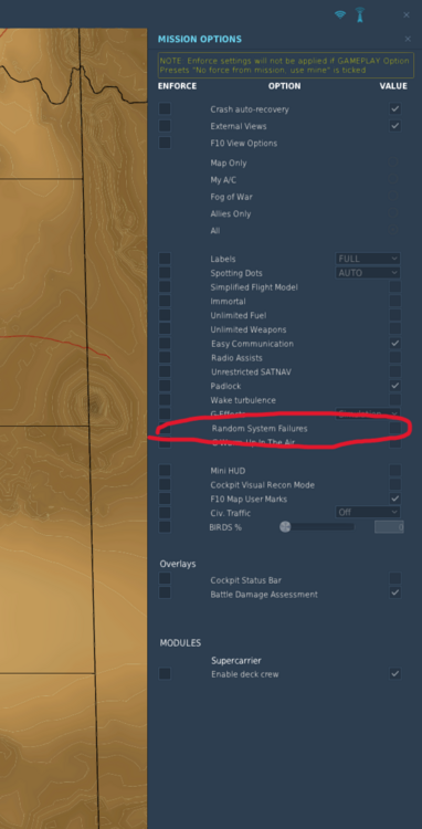 Unfortunately, I can't bring up my DCS to show you but there is an option to turn on random system failures. I'll screenshot/make a quick vid of it when able.