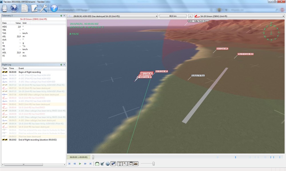 Hi folks! There doesn't seem to be a recent tacview thread, so I dare to start a new one. INITIAL SITUATION: DCS:A10C beta4, Win7-64bit, no DCS-BS installed. ISSUE: Terrain is misaligned. See screenshot, the tanks should be near the runway, not in the ocean. USUAL EXPLANATION: Real terrain used instead DCS terrain. Reason seems to be some misalignment of the DCS terrain to the real world. USUALLY SUGGESTED SOLUTION: In tacview simply change terrain from "Real Terrain" to "Lock-On / DCS". So far, so good. Here starts my PROBLEM: Changing from "Real Terrain" to "Lock-On / DCS" doesn't do anything beyond the terrain graphis redrawn in the exactly same way. MY THEORY: Tacview doesn't have the "Lock-On / DCS" terrain, because it doesn't know that it's installed on my computer. HINT: in the tacview menu with the world icon, there's no "Record [DCS:A10C] flights" entry. Unfortunately, the link on the tacview homepage explaining the DCS:A10C installation is dead. I understand that sub meter accuracy is not in the scope of tacview, but I am sure it can do better than what I get. So, has anybody of you managed to get it to work properly and can comment on it? Anybody has a "Record [DCS:A10C] flights" entry? Regards HotelAlpha