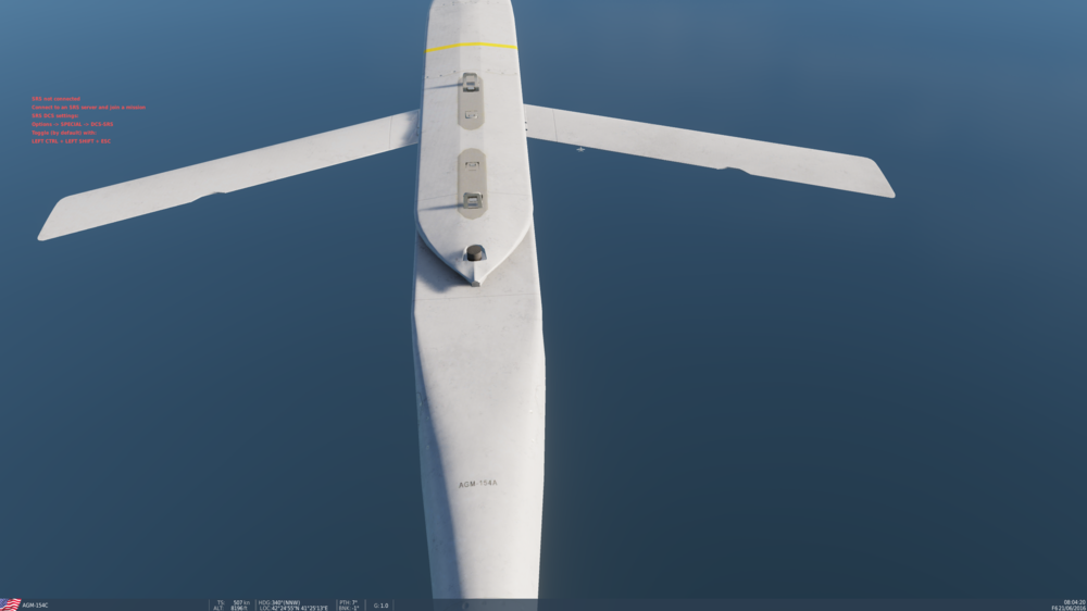 1. The texture of the AGM-154C is showing the name of the AGM-154A. This screenshot is showing the mismatch of weapon and texture. I'm not 100% confident that this is wrong, as I couldn't find find a real images of the weapon showing this area. (Seeing that it's the same hull as the A, it could be possible to hold the same, invalid, model number) I could find a render on artstation.com showing this part of the bomb, indicating that the model number should match the actual model. Although this is far from a confirmed source ]