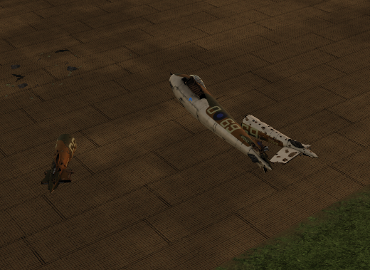 I've noticed that when damaged, the Mosquito seems to lose most of its tail section in two separate pieces, but the plane will still have its tail attached: This is the wreckage of a single plane (still working on my take-off's, ha). I've seen the same thing when attacking Mosquito's in a dogfight/intercept. The tail will appear to fly off, but is still attached. Thanks!