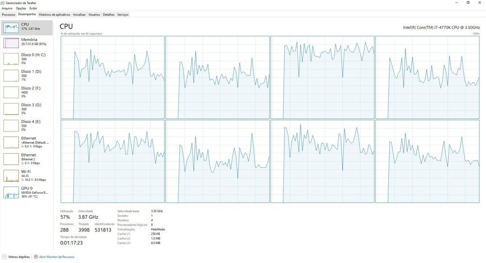 3. Thanks for the quick response. I am not sure if it was running the MT option. I removed the icon and launched again ensuring MT is selected. I have already disabled TACVIEW. I do not have winwing devices, but I do use DCS BIOS (older version). Do you think DCS BIOS could have anything to do? ---------------- In general inside the shelter I am getting around 20FPS. I had the settings on high, and as a result you see the HW usage as attached. As you can see memory is almost 100%, which may be part of the problem, however there does not seem to have any paging happening on the disks. I will try lowering textures and other settings to check again. Also I will give it a shot and move around in the scenario to see if it gets better once I get out from the shelter. Thank you!