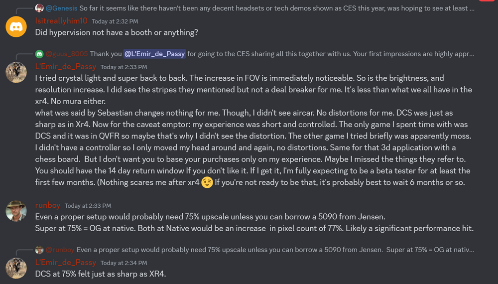 Das hat sich mittlerweile geklärt...kurz vor der CES-Messe hat Pimax wohl die Winkel der Linsen bei den Vorserienmodellen neu eingestellt, aber noch keine passenden Softwareprofile dafür erarbeitet. Ob das nun ein cleverer Schachzug ist, kurz vor der Messe solche Maßnahmen zu ergreifen, sei mal dahingestellt . Man muss aber halt bedenken, dass Pimax noch an der Super arbeitet und es noch keine finale Version gibt. Zwei Tage später war MRTV nochmals am Pimax-Stand, diesmal waren neue Profile aufgespielt...das Gerät war deutlich besser, noch nicht perfekt, aber auf dem richtigen Weg...wie gesagt, es sind halt immer noch Prototypen, die da gezeigt wurden. Hier das kurze Video dazu (...ich versuche es zu verlinken aus Discord, vermutlich muss es downgeloaded werden, um es ansehen zu können): https://media.discordapp.net/attachments/1324628857172787271/1327052371976523807/75815511433__EC4F6279-D0F7-4C1A-9A00-9A31D85F0C7D.mov?ex=6781a954&is=678057d4&hm=3de791d359b36961b311704ef84aba92c325cecc522f883ee4139ce4fe58e865&