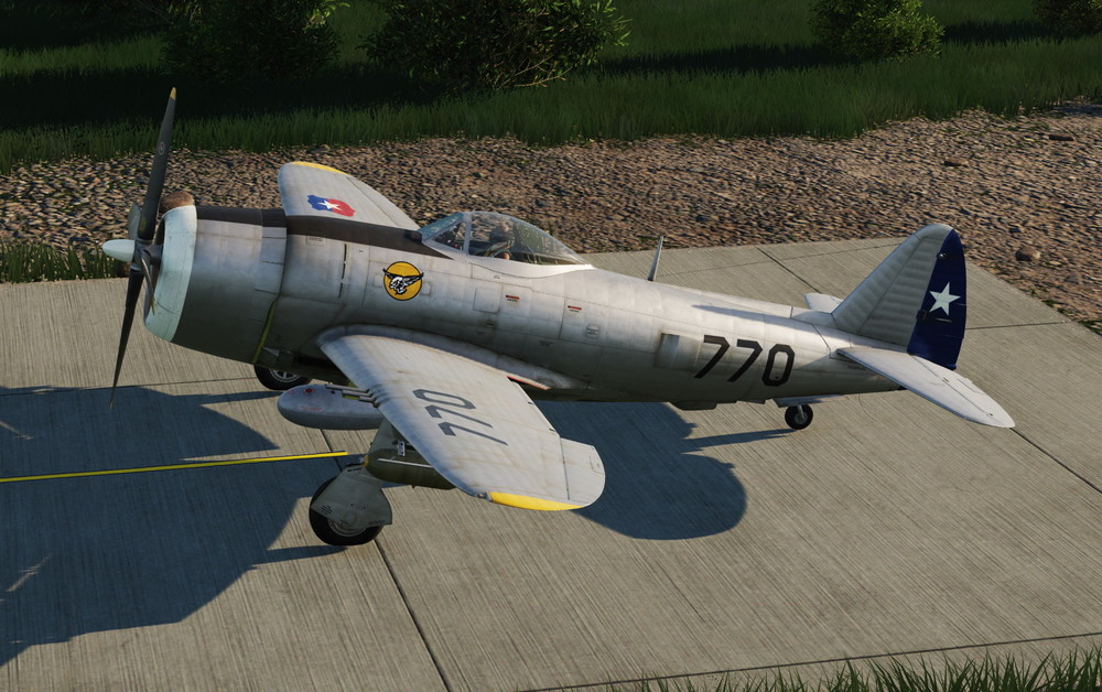 After creating a few P-51D / TF-51 liveries for Latin American countries (see this thread) I started to create liveries for the Thunderbolt as well. I'm currently reasearching for Cuba, Colombia, Chile and Venezuela but I have started with Chile. The following livery is work in progress. I have to tweak the roundel size and the squadron logo is not very good. Some colors also need tweaking.