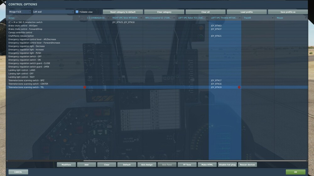 I've deleted them twice already. Now I just got the EE, and here we go again. I've got those stupid red exclamation points all over. I can't fly the F1 if the controls won't bind. I had hoped that when the EE was released this would get fixed. It first started happening when the first yaw and pitch stability update hit. Now every update I get more and more red exclamation points. I have given up flying the F1 air to air because I can't bind the controls. Now it looks like I won't be able to fly the EE either. I'm going to uninstall the F1. Then I'm going to reinstall. I've already completely cleared all the bindings twice. If that doesn't fix the problem, I'll be submitting a ticket. I'm not happy about having an aircraft I can't use the controls on. -